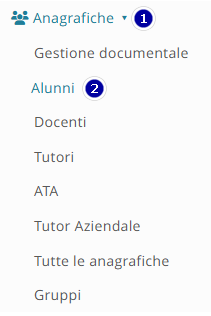 Nel menù di sinistra scegliere il percorso Anagrafiche → Alunni