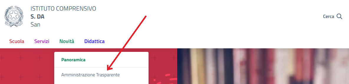 Una volta rimossa la voce dalla tendina del menù Novità, TrasparenzaAI andrà a leggere il link diretto presente a piè di pagina del sito scolastico.