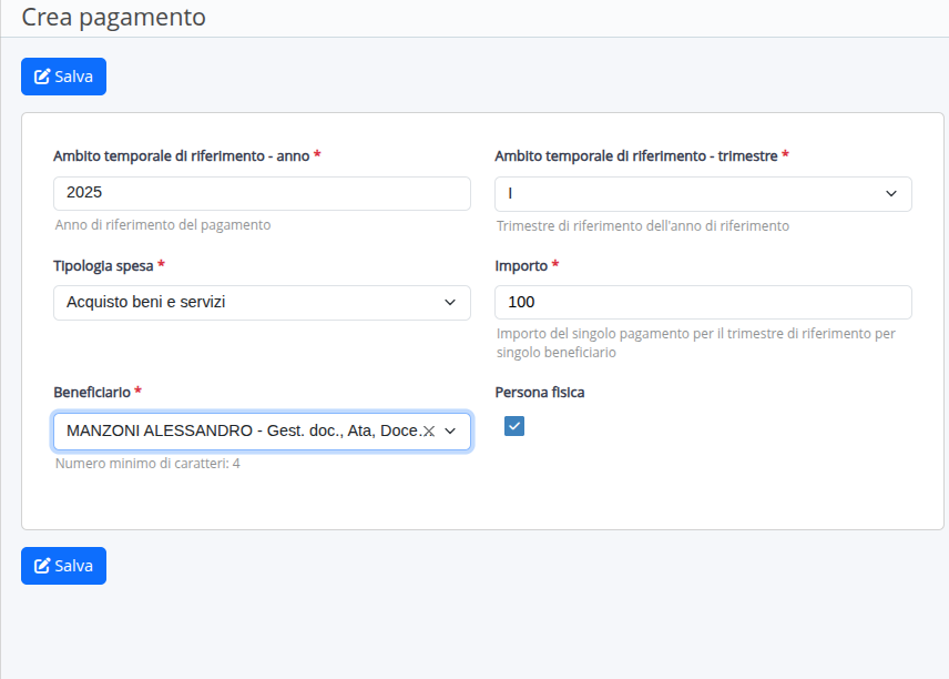 | Importo | Importo del singolo pagamento per il trimestre di riferimento per singolo beneficiario |