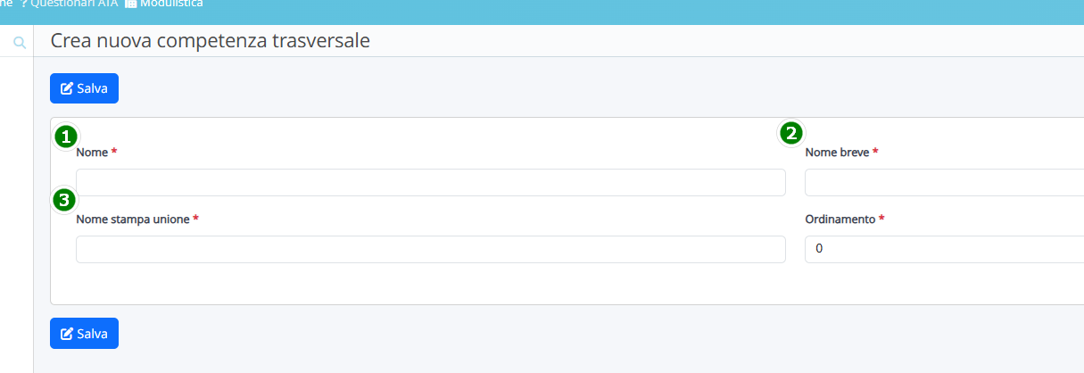 2. / 3. Un nome breve e un nome per stampa unione (possono essere uguali tra di loro, ma univoci tra le varie competenze trasversali).