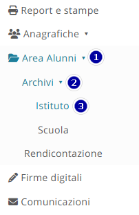 All'interno dell'Area personale, dal menù di sinistra andare sul percorso Area alunni → Archivi → Istituto