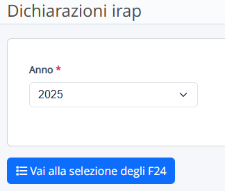 Selezionare nel campo "Anno" l'anno corrente della dichiarazione e poi cliccare sul pulsante "Vai alla selezione degli F24"