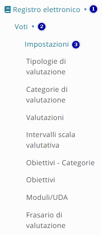 Per poter personalizzare tali etichette è necessario posizionarsi nel menù di sinistra e seguire il percorso Registro elettronico → Voti → Impostazioni