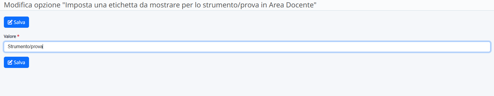 Nell'immagine di seguito vediamo come impostare un'etichetta da mostrare per lo strumento/prova in Area Docente