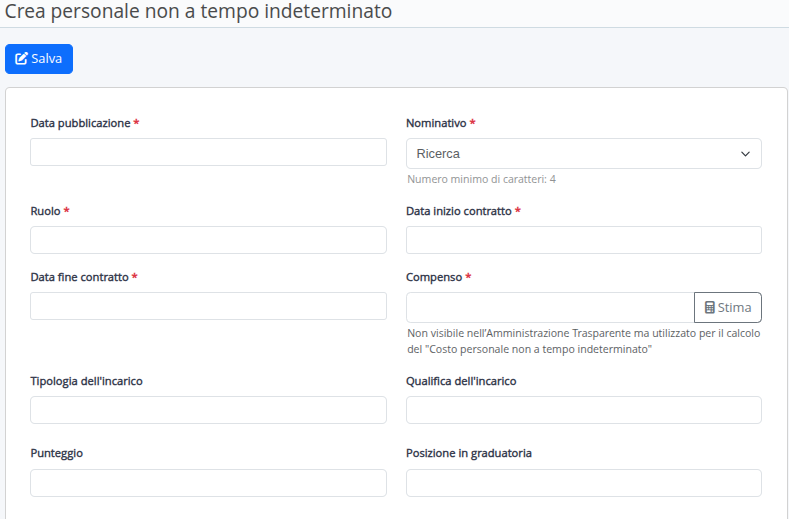sarà possibile inserire un nuovo nominativo non a tempo indeterminato.